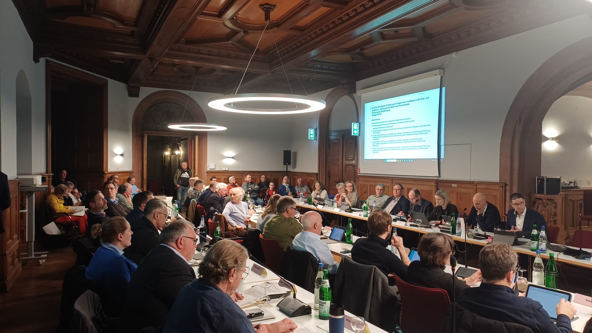 Im Großen Sitzungssaal des Schlosses ist der Haushalt gleich der erste Tagesordnungspunkt. Der Haushalt wird – Stand heute – mit einem Defizit von rund zwölf Millionen Euro abschließen; das hatte bei der Einbringung noch viel schlechter ausgesehen. Dennoch hatte sich der Gemeinderat vor wenigen Wochen gegen eine Erhöhung der Grundsteuer und der Gewerbesteuer ausgesprochen.